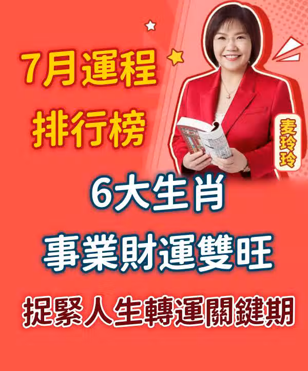 7月運程排行榜 6大生肖事業財運雙旺 捉緊人生轉運關鍵期