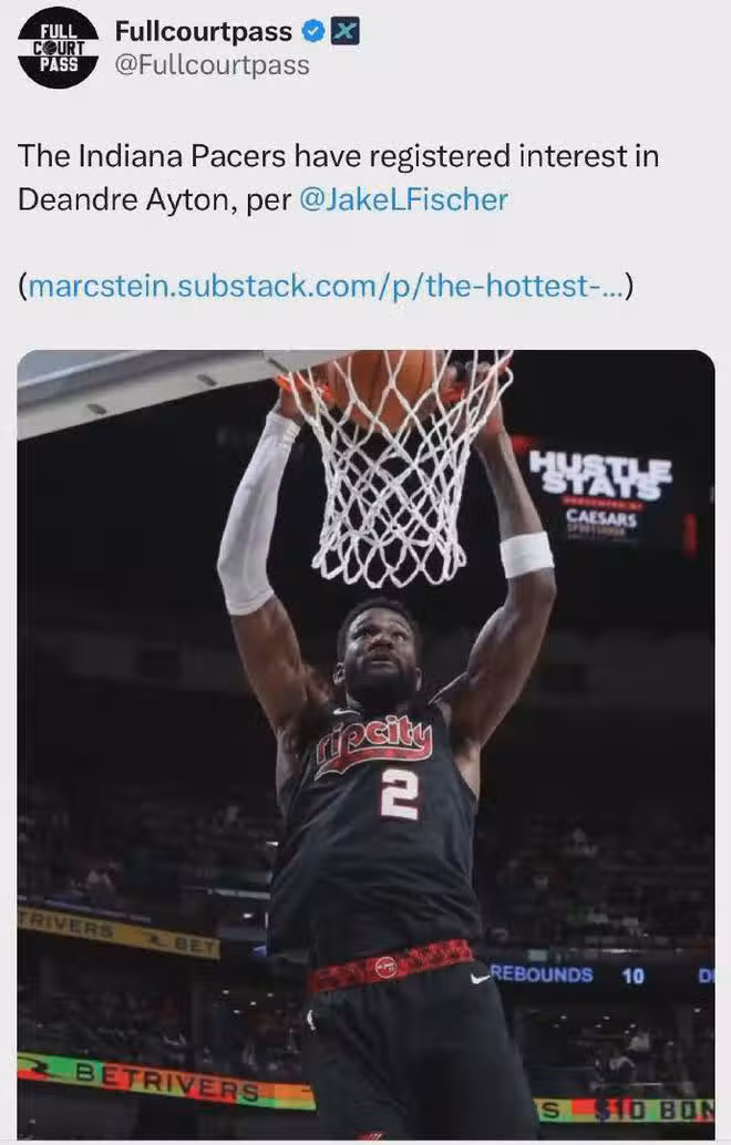 其實本來步行者對艾頓沒有興趣的,但隨著特納以4年1.07億美元加盟雄鹿,現在只能爭取引進一位大中鋒來填補因後者離隊留下的陣容空缺。