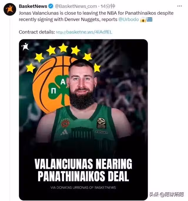 值得一提的是,瓦蘭丘納斯下賽季的薪資為1040萬美元並不算低,但一旦他選擇打低級別聯賽而放棄為掘金隊效力,那麼將直接導致掘金隊陣容出現不完整。