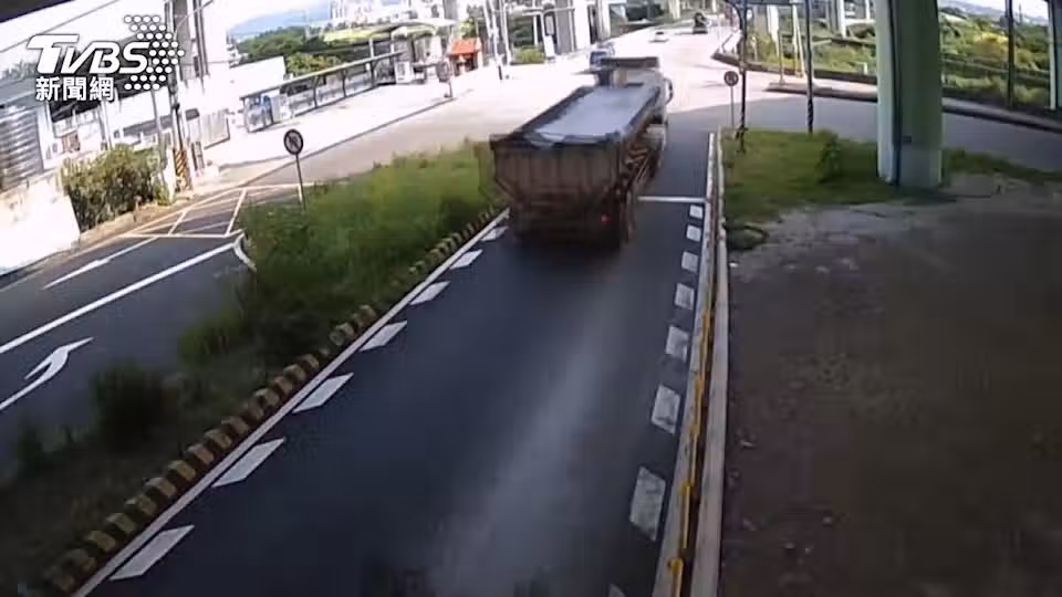 砂石車泥漿染路面!三義火炎山「2騎士慘摔」監視器全錄下