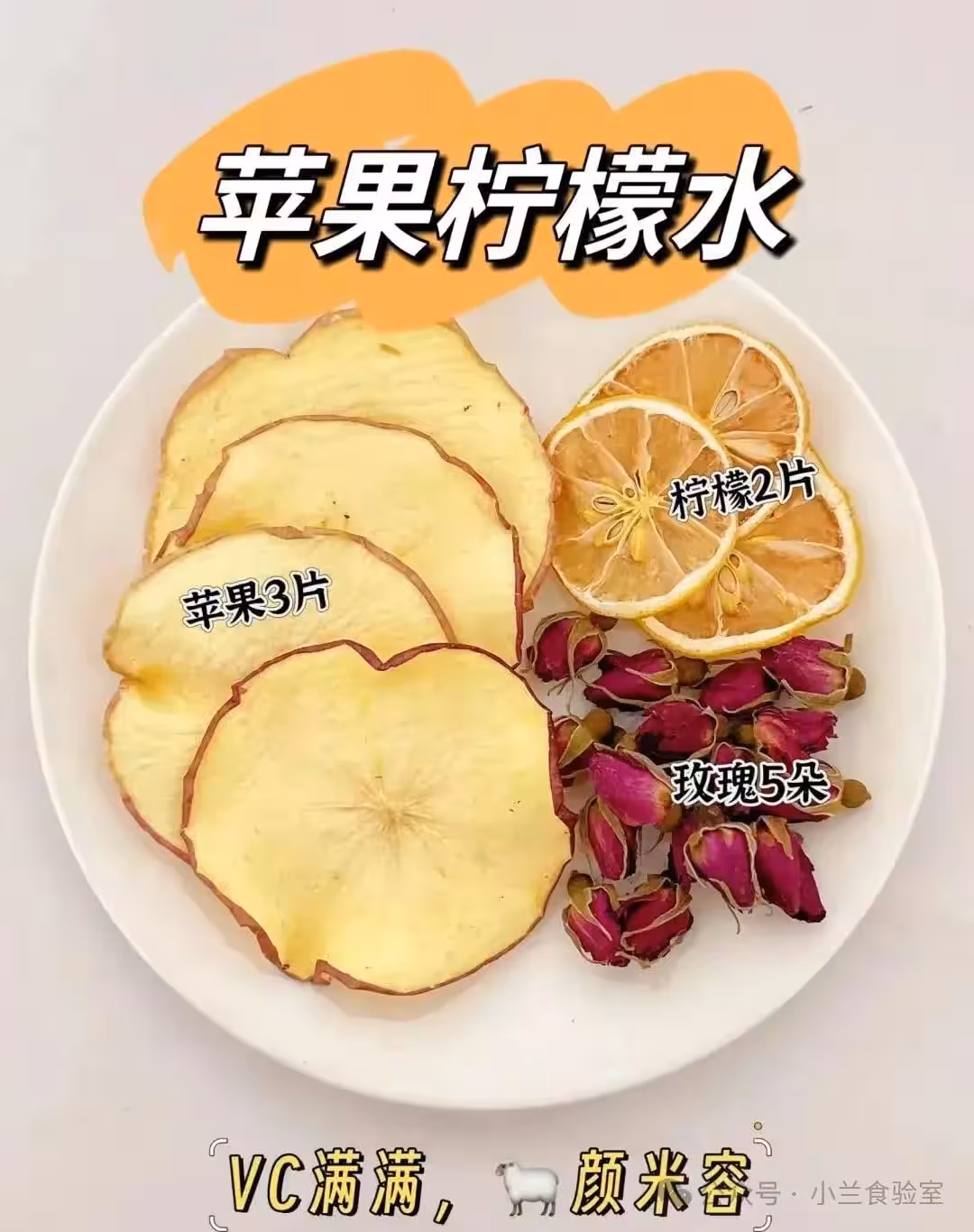 蘋果(清腸) + 檸檬(高維C,抗氧化扛把子,亮白膚色!✨)+ 玫瑰(疏肝理氣,調節內分泌失調型水腫)。不僅加速代謝燃脂,還能讓肌膚透亮!腿和臉一起「瘦」出光彩!🌟 #美白 #抗氧化 #緊緻肌膚