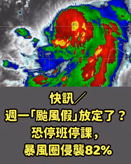 快訊/周一「颱風假」放定了? 停班停課兩天,暴風圈侵襲82%