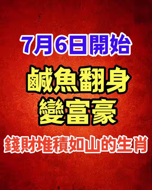 7月6日開始鹹魚翻身變富豪,錢財堆積如山的生肖!