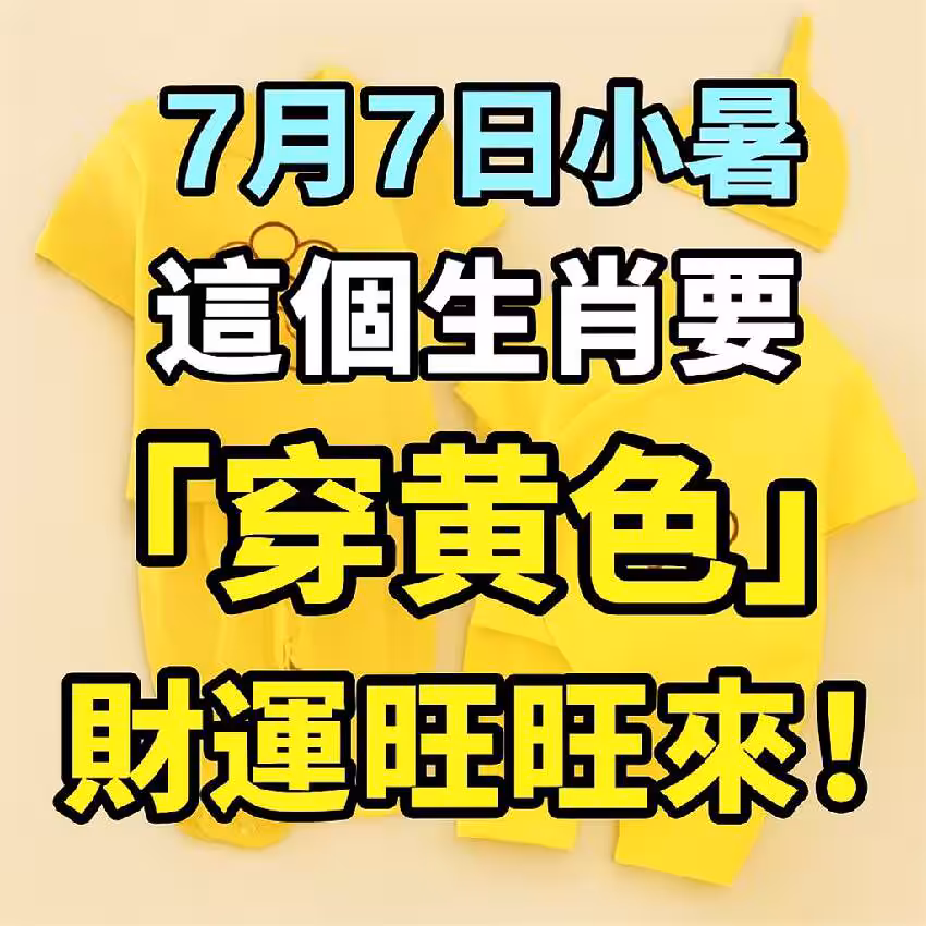 🟡 7月7日小暑,這4個生肖一定要「穿黃色」,才能財運旺旺來,好運到明年!🌞黃色象徵光明、貴氣、土金之財,尤其在小暑這天能穩住氣場、吸引地利財源。