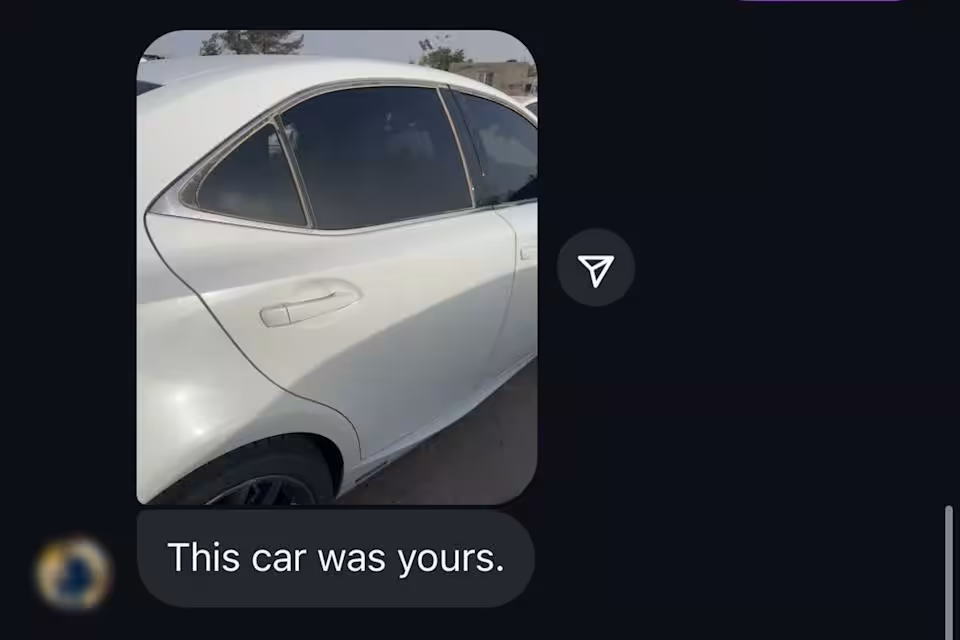 一名網友在社群平台Threads上分享「報廢車的旅程」,他說一年前因為車禍,車頭遭撞凹,將車子給報廢,沒有想到一年後收到一名阿富汗男子透過Instagram的私訊,阿富汗男子先是向他打了招呼,拍了張車子外觀照並表示「這是你的車」令他相當驚訝。