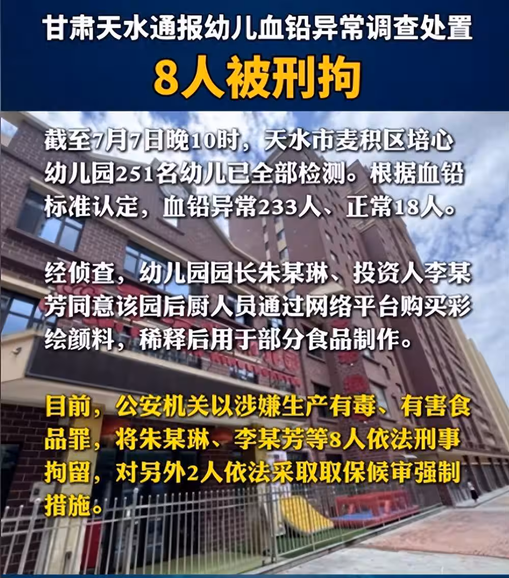 前段時間大家震怒的,私立幼兒園出現大規模兒童鉛中毒的事件終於有了個結果。