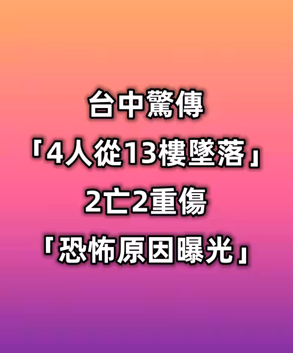 突發/台中驚傳「4人從13樓墜落」!2亡2重傷「恐怖原因曝光」