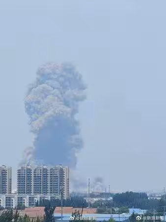 當地時間11時57分左右,一聲驚天巨響震撼了整個工業區,圖片來源:ETtoday 濃煙直衝雲霄,廠區內白色氣體噴射不止,黃色有毒氣體瀰漫整個區域。