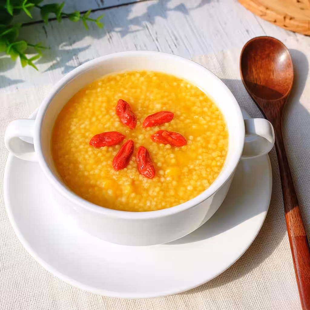 【功效】南瓜補中益氣,小米健脾和胃,適合脾胃虛寒、食欲不振者。