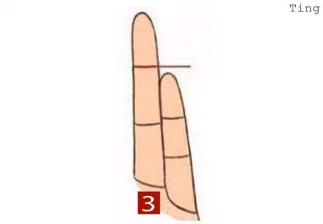 3、你的小拇指長度介於無名指的第一和第二指節中間