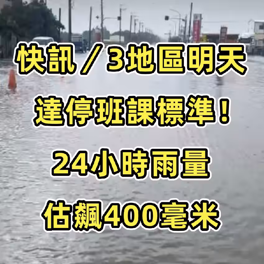 快訊/3地區明天達停班課標準!24小時雨量估飆400毫米!