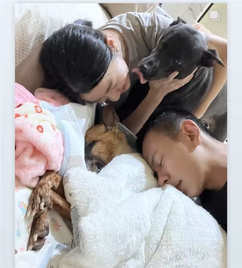 讓人不舍的是,錢錢在孫綻為它吹毛的過程中,僅僅短短4到5秒鐘,就悄然離開人世。慶幸的是,在錢錢離世前,米可白和孫綻帶著毛孩子們、一起拍攝了溫馨的全家福照片。雖然照片中米可白臉上掛著微笑,但眼眶中卻盈滿淚水,孫綻的眼睛也因哭泣而浮腫。