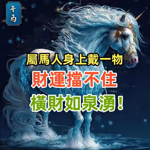 屬馬人身上戴一物,運勢一路走高,財運擋不住,橫財如泉涌