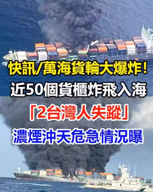 快訊/萬海貨輪大爆炸!近50個貨櫃炸飛入海「2台灣人失蹤」濃煙沖天危急情況曝~