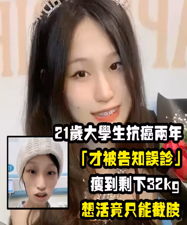 21歲大學生抗癌兩年「才被告知誤診」 ! 瘦到剩32kg「想活只能截肢」