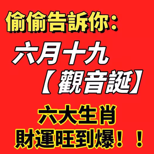 偷偷告訴你:六大生肖,六月十九【觀音誕】財運旺到爆