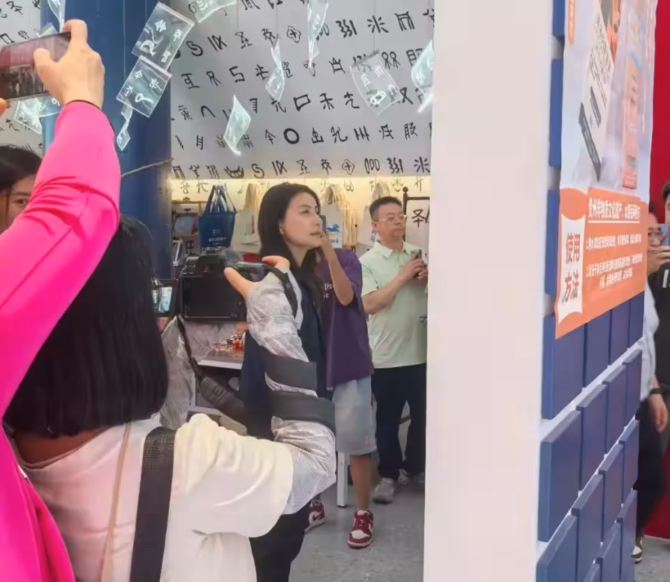 郭晶晶一家五口在貴州,俯身握手一點沒架子,衣服logo顯愛國情懷