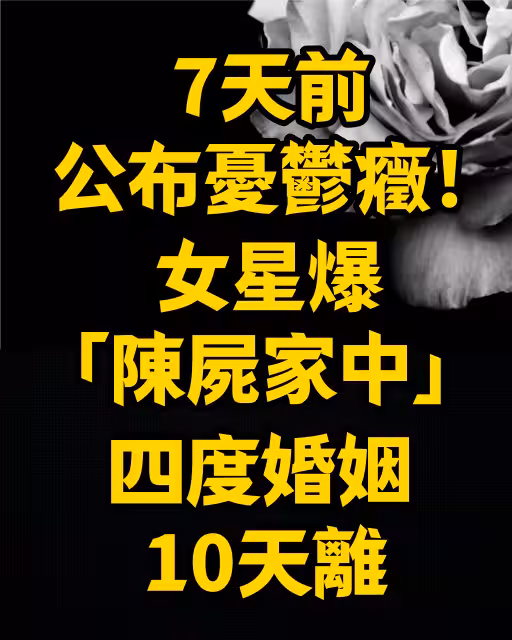 7天前公布憂鬱症!女星爆「陳屍家中」四度婚姻10天離