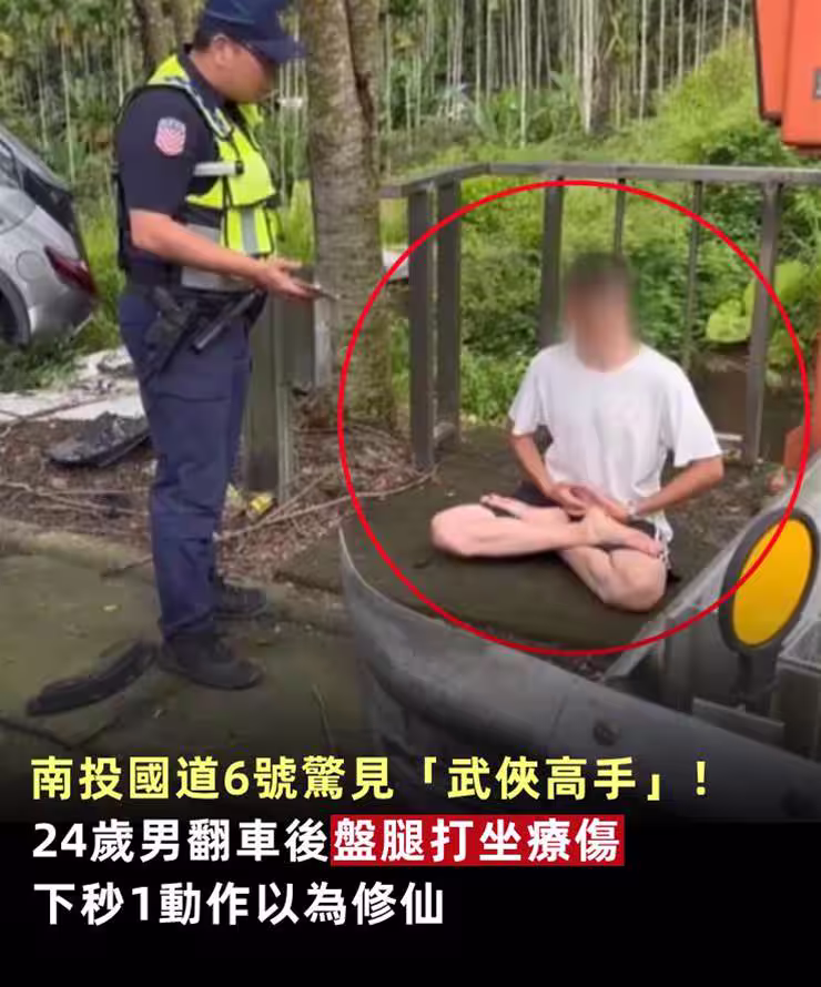 南投國道6號驚見「武俠高手」!!24歲男翻車後「盤腿打坐療傷」下秒1動作以為修仙