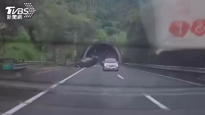 國道六號東向20.1公里處,一輛灰色休旅車疑似在變換車道時,追撞前方銀色轎車,瞬間失控翻滾後撞上外側護欄,整輛車幾乎報廢。