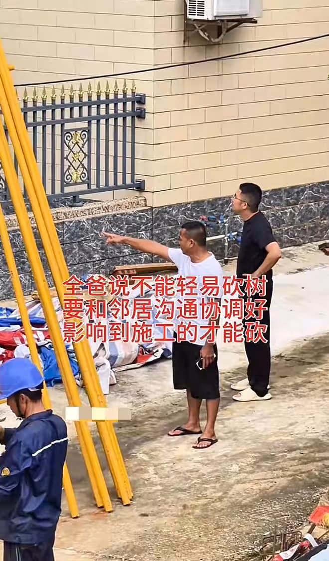 從現場網友拍攝的畫面來看,全妹家新房已經搭好腳手架和安全網了,靠鄰居家的那面牆的腳手架是從樹枝里穿過去的,都這樣了全爸還沒有修剪樹枝,鄰居到底是何方神聖?竟然讓全爸如此小心翼翼。