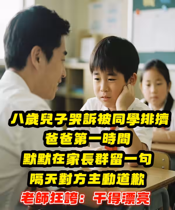 八歲兒子哭訴被同學排擠!爸爸第一時間「默默在家長群留一句...」 隔天「對方主動道歉」老師狂夸:乾得漂亮