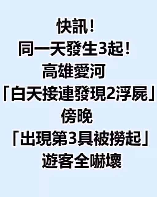 太離奇!高雄知名景點愛河白天(6/14)才傳出連續發生2起落水死亡案件!沒想到傍晚又傳出發現第3具浮屍!