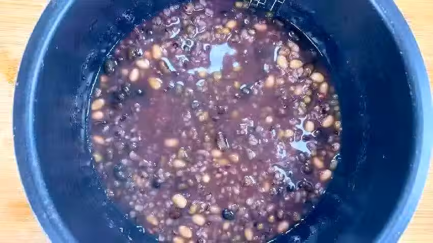 3、煮到時間後,雜糧粥就煮好了,軟爛粘稠非常的有食慾,喜歡吃甜的朋友,可以往裡面加入適量的白糖,用勺子攪均勻盛出來即可,但是老年人喝的話就不要加糖了,容易引起血糖高,適量即可。