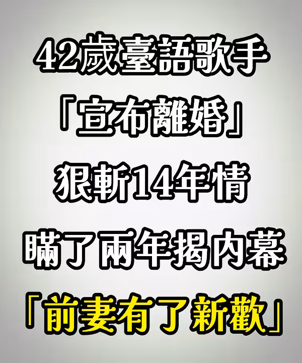 近日演藝圈再傳出震撼彈,一位知名台語歌王驚傳婚變,與結縭14年的妻子協議離婚,更意外的是這段婚變消息竟然隱瞞了長達2年之久,直到後來才對外界公開,令人唏噓。