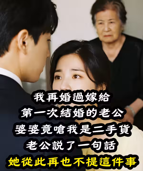 我再婚過嫁給第一次結婚的老公,婆婆竟嗆我是「二手貨...」老公說了一句話,她從此再也不提這件事