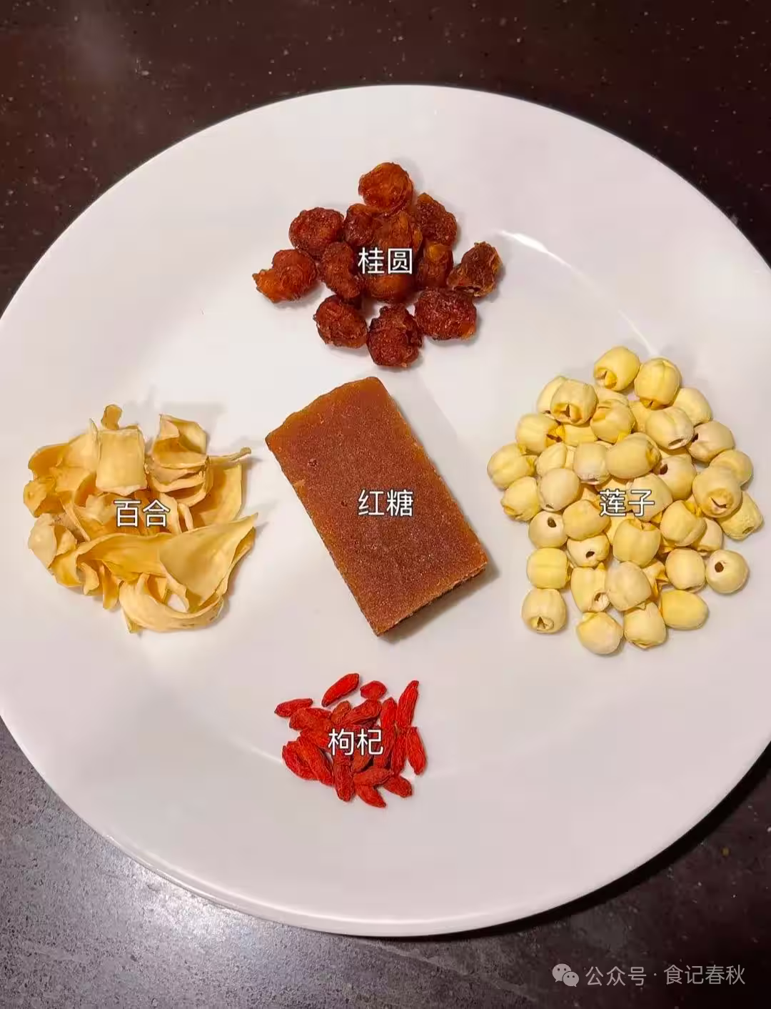 鮮百合1顆(或干百合15g)、蓮子20g、枸杞10g、冰糖10g(可選)