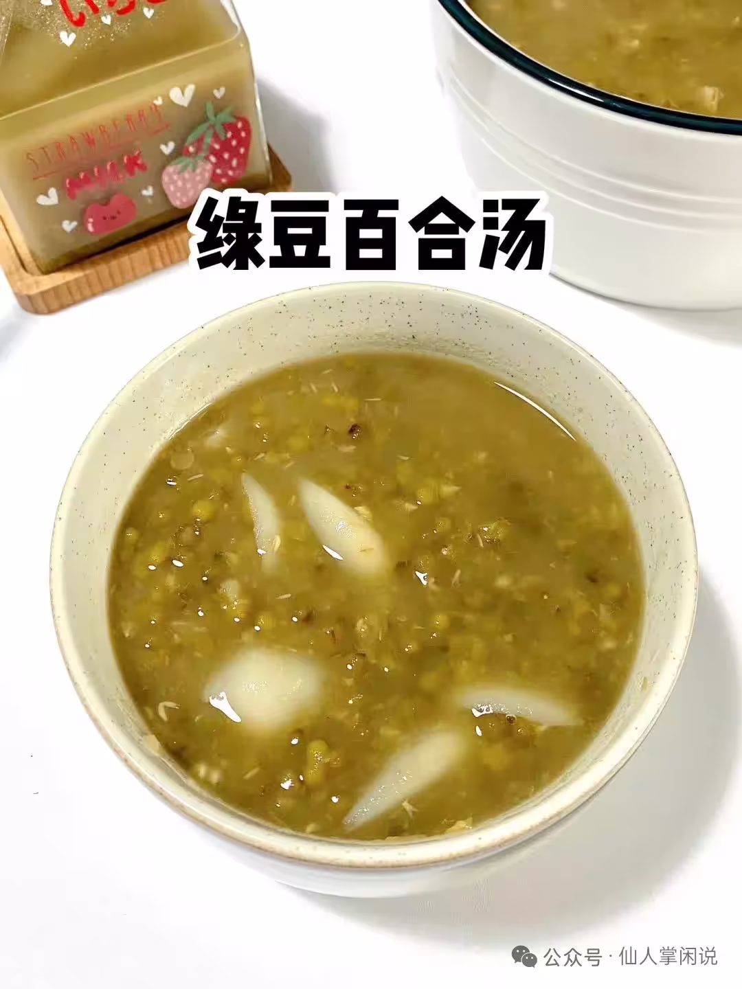 食材: 綠豆 100g、干百合 20g、冰糖適量
