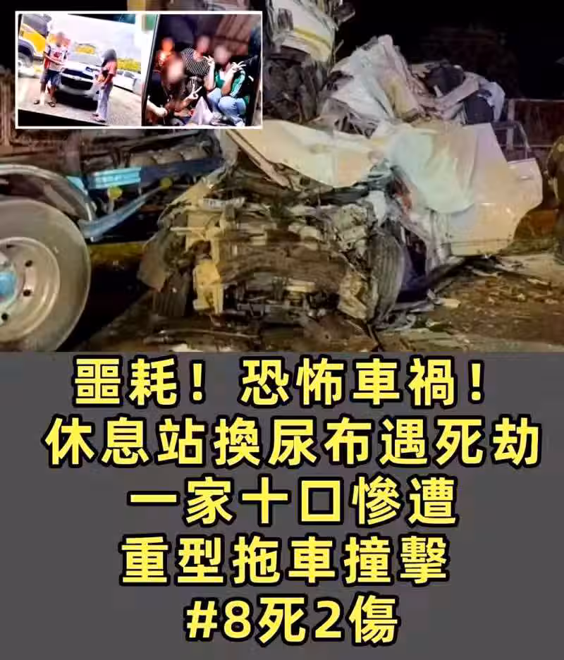 休息站換尿布遭重型拖車猛撞 一家十口8死2傷