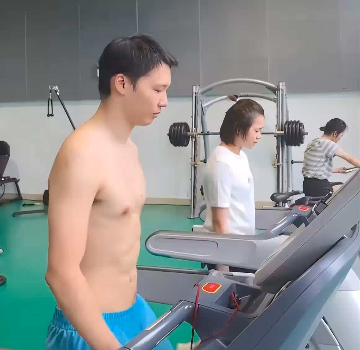 隨後一段視頻中,全紅嬋和陳艾森比試懸掛舉腿。全紅嬋落敗了,視頻放出的是兩人比試最後階段的內容,全紅嬋奮力做完最後一個後癱坐地上。陳艾森則是又多做了幾個,然後跳下來。