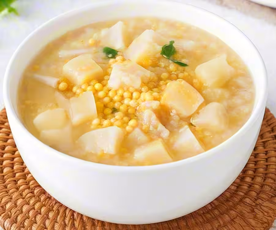 【功效】山藥健脾養胃,蓮子養心安神、健脾止瀉,小米溫和滋補,三者搭配能健脾益氣、養胃生津,適合脾胃虛弱、容易腹脹、消化差的人,溫和不刺激,長期吃能增強脾胃運化能力。