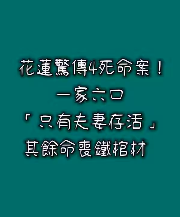 快訊/花蓮驚傳4死命案!一家六口「只有夫妻存活」其餘命喪鐵棺材!