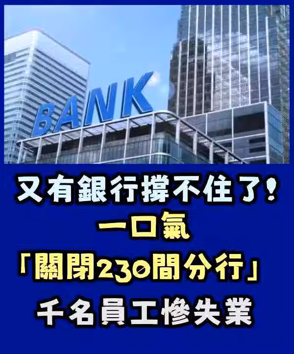 台銀行撐不住了!一口氣「關閉230間分行」,千名員工慘失業!