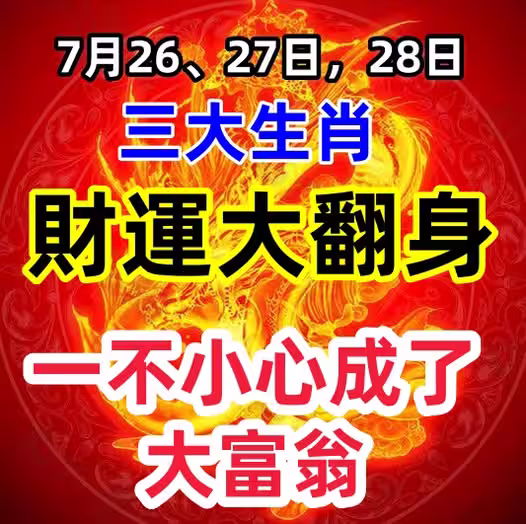 7月26、27日,28日,三大生肖「財運大翻身」一不小心成了大富翁!