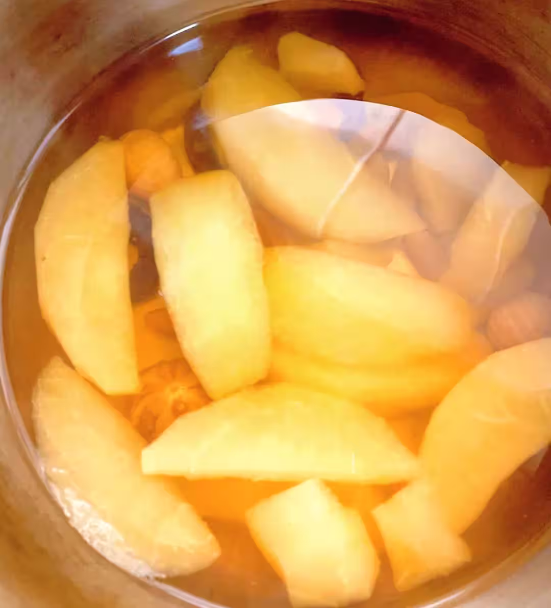④關火燜5分鐘,讓味道更融合;喜歡甜的可以加蜂蜜(放溫後加,不破壞營養),喝起來潤潤的,連煮過的蘋果都帶著山楂和無花果的甜,超好吃。