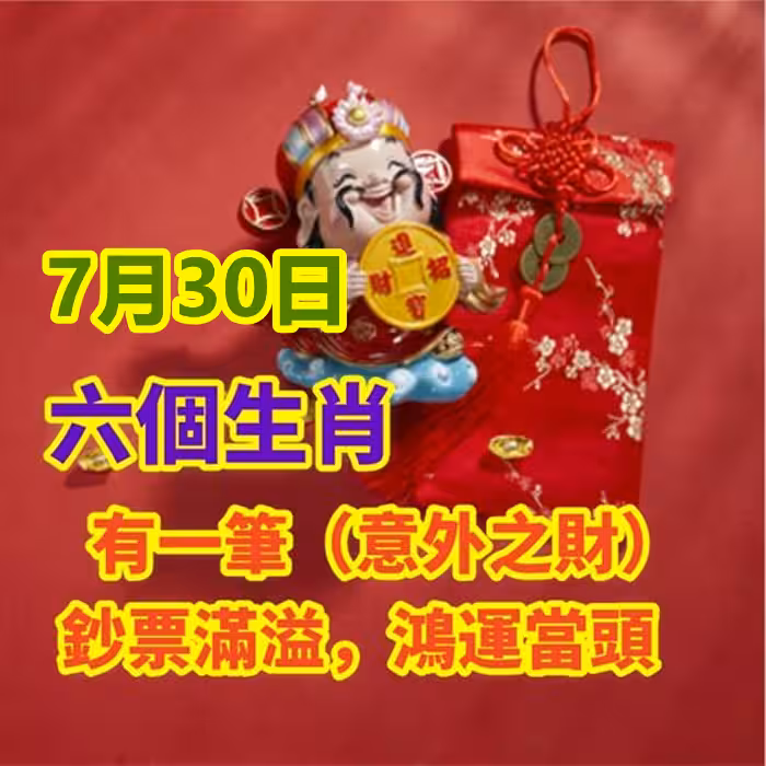 7月30日:六生肖有一筆(意外之財)鈔票滿溢,鴻運當頭