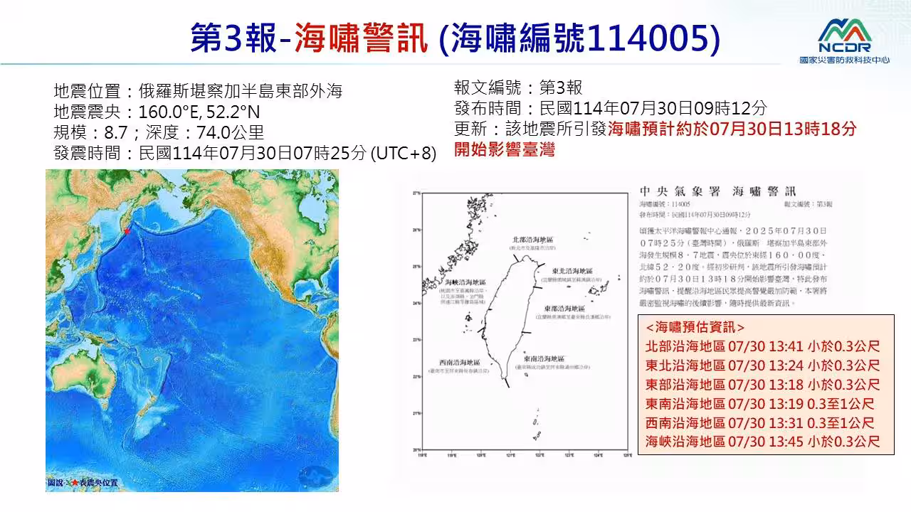 海嘯警報。(圖/國家災害防救科技中心LINE帳號)