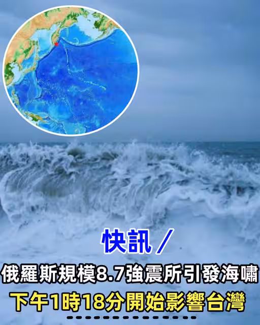 快訊/俄羅斯規模8.7強震所引發海嘯,下午1時18分開始影響台灣