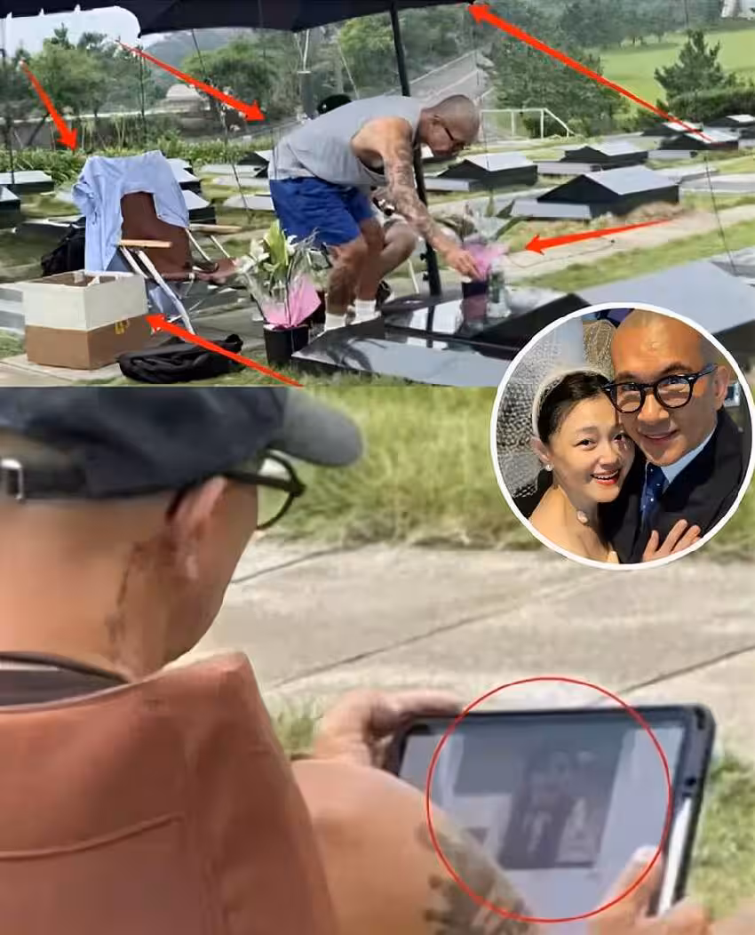 但咱就是說,誰家好人去墓地祭奠妻子,還要自帶摺疊椅、保溫箱、茶具、平板電腦等「全套裝備」,甚至連遮陽傘都準備齊全,360度無死角地展現「深情」.....