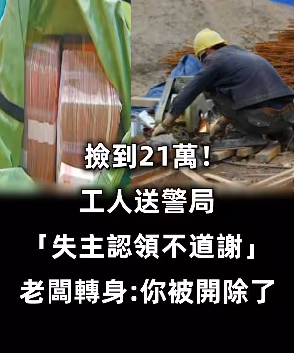 撿到21萬!工人送警局「失主認領不道謝!」老闆轉身:你被開除了...
