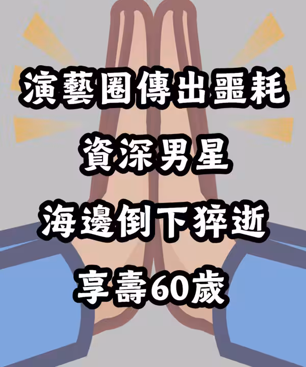 快訊/演藝圈傳出噩耗!資深男星「海邊倒下猝逝」享壽60歲