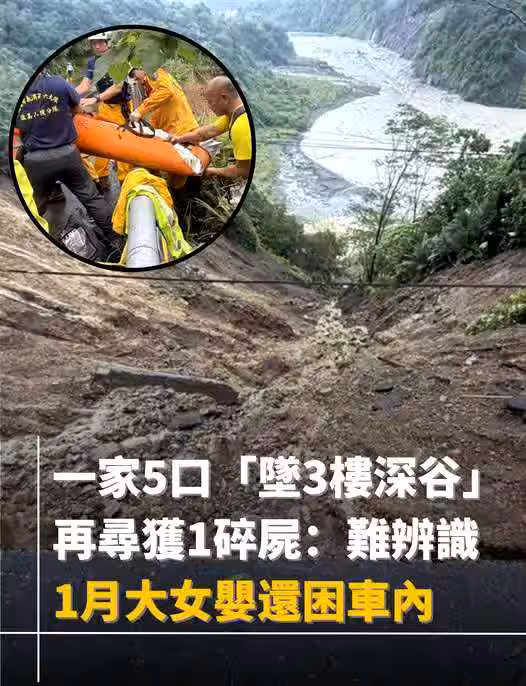 快訊/1月大女嬰還困車內…一家5口「墜3樓深谷」!再尋獲1碎屍!