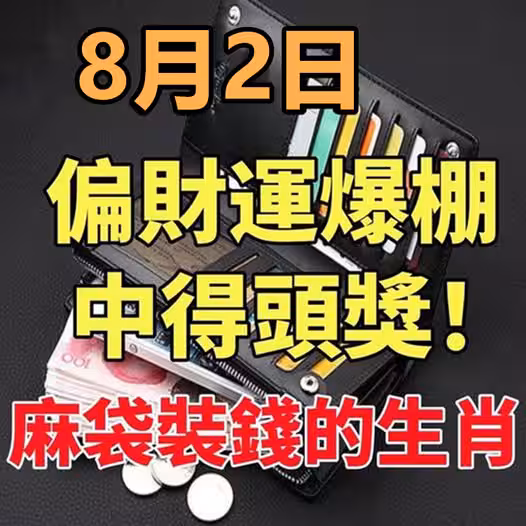 8月2日偏財運爆棚,中得頭獎!用麻袋裝錢的生肖