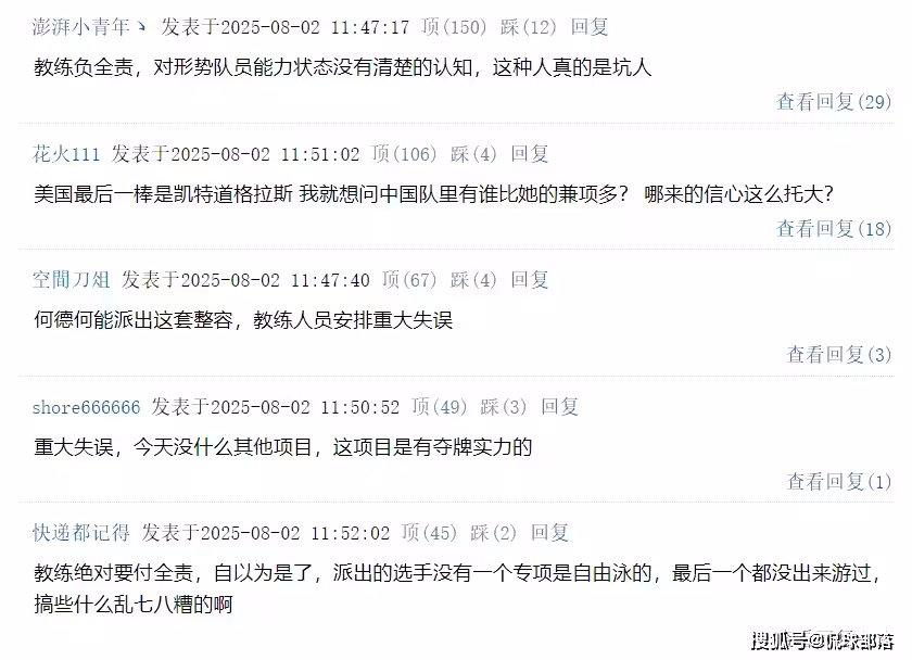 ——教練絕對要負全責,自以為是了,派出的選手沒有一個專項是自由式的,最後一個都沒出來游過,搞些什麼亂七八糟的啊