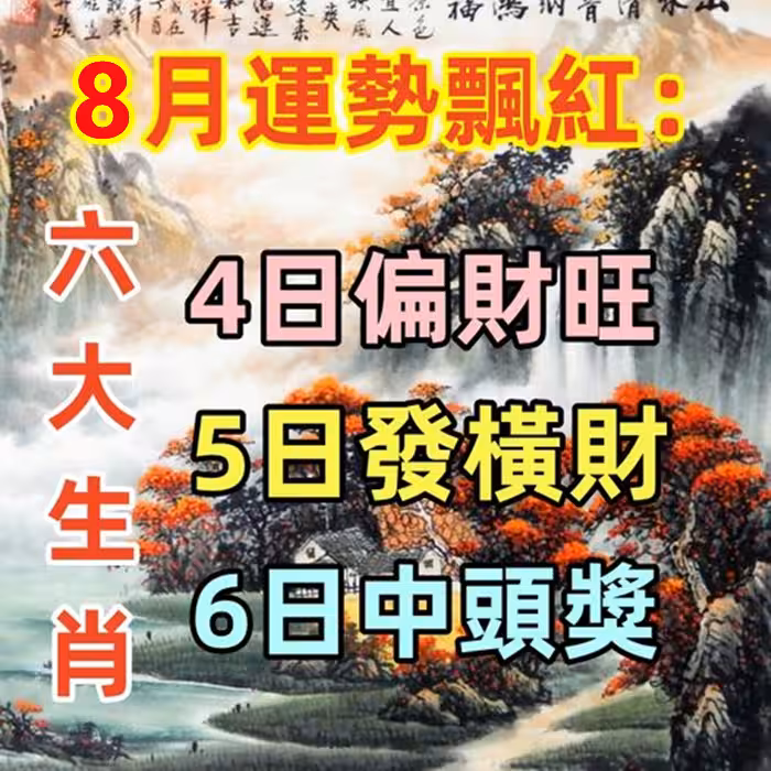 六大生肖運勢飄紅:8月4日偏財旺,5日發橫財,6日中頭獎!