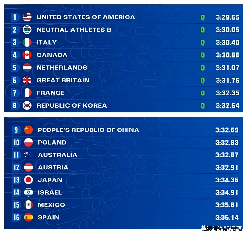 從官方公布的成績來看,中國隊僅僅落後排名第八的韓國隊0.15秒,真是太可惜了。